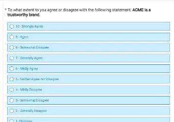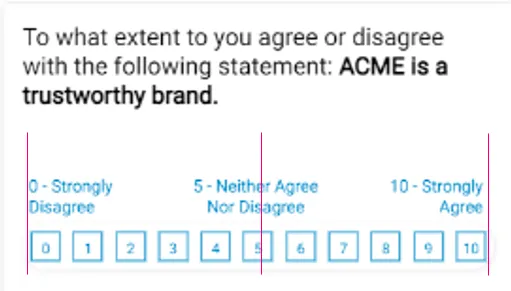 Changes to the Modern survey themes will make it easier for respondents to understand and answer the questions. The changes will include improvements to Scale question horizontal alignment. Horizontal scale will be best displayed with only two or three anchor labels. The first label will always be left-aligned​. The right label will always be right-aligned​. The middle labels will always be center-aligned.
